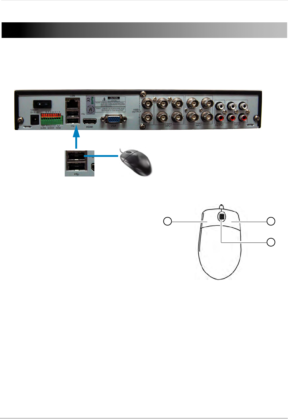 The DVR is designed for mouse navigation. To use a USB mouse (included), connect the