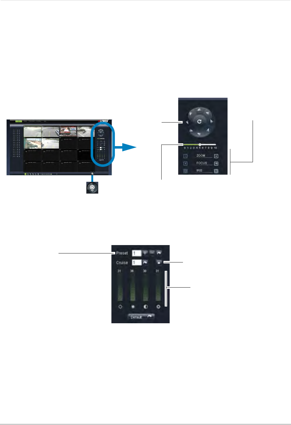 The system supports remote PTZ controls for compatible PTZ cameras (not included).