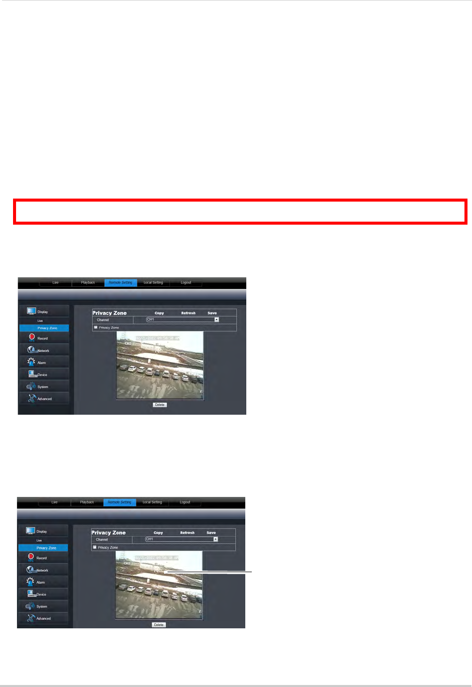 ick the Remote Setting tab, and then click Display>Privacy Zone