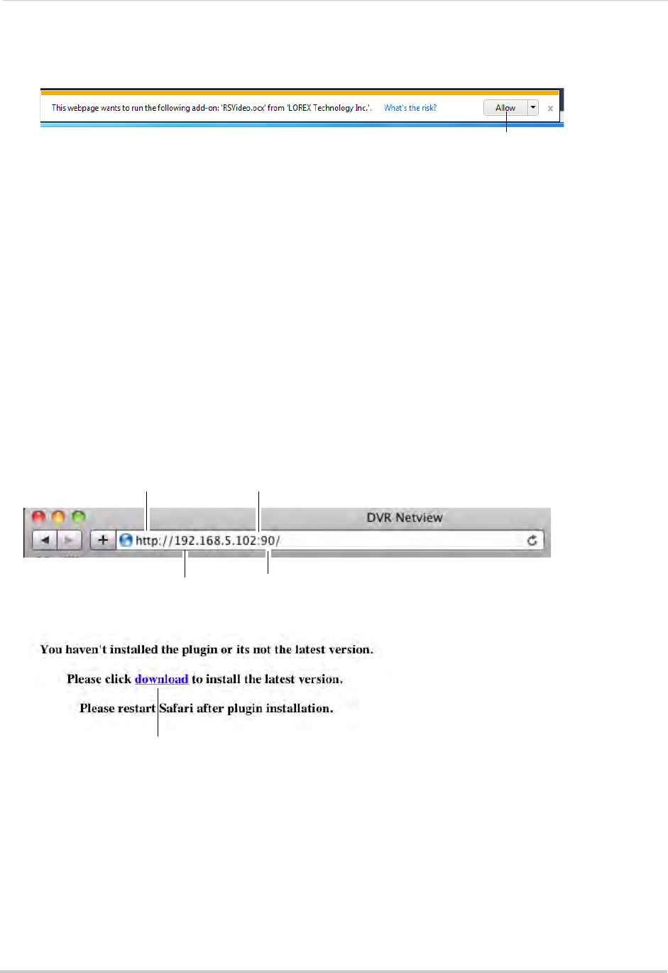 DVR after the address. A page appears to prompt you to install a plug-in.