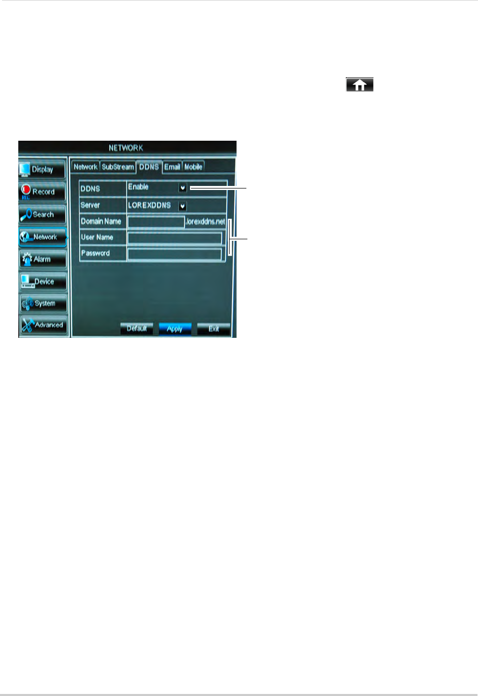DDNS drop-down menu, select Enable. Beside Server, select LOREXDDNS (default).