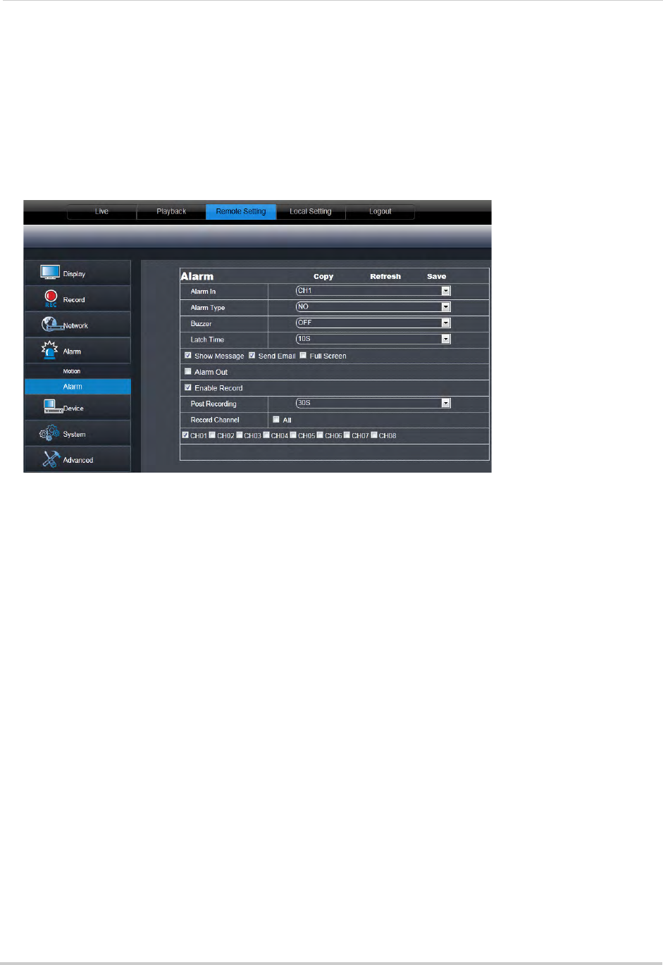 ick the Remote Setting tab, and click Alarm >Alarm.