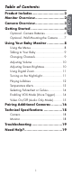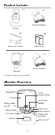 Product Includes x1* x1* Power Adapter Camera x2* x2* x2* Screws & Anchors Cable Clips x1 x1 Power Adapter Monitor *Contents may vary by model Monitor Overview Sound LED’s Select camera/Scan Display Start/stop lullaby Power/video on/off Volume up Volume down Power LED Link LED Menu/Zoom Microphone Speaker Power port 2