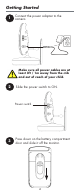 Getting Started 1 Connect the power adapter to the camera. Make sure all power cables are at least 3ft / 1m away from the crib and out of reach of your child. 2 Slide the power switch to ON. Power switch 3 Press down on the battery compartment door and slide it off the monitor.