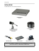 Getting Started Getting Started The SHS-4QM comes with the following components: Quad Processor / Switcher 4 x Weatherproof Color Day/Night IR Cameras with Stands DIN Video Cable Remote Control 4 x 60’ DIN Extension Cables Swticher Power Adapter CHECK YOUR PACKAGE TO CONFIRM THAT YOU HAVE RECEIVED THE COMPLETE SYSTEM, INCLUDING ALL COMPONENTS SHOWN ABOVE.