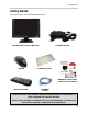 Getting Started Getting Started The system comes with the following components: POWER ADAPTER LCD MONITOR & DVR COMBO UNIT MOUSE CLEANING CLOTH MANUALS, QUICK START GUIDE & SOFTWARE CD REMOTE CONTROL ETHERNET CABLE * HARD DRIVE SIZE AND CAMERAS VARY BY SPECIFIC MODEL. PLEASE REFER TO YOUR PACKAGE FOR CONTENT DETAILS. CHECK YOUR PACKAGE TO CONFIRM THAT YOU HAVE RECEIVED THE COMPLETE SYSTEM, INCLUDING ALL COMPONENTS SHOWN ABOVE.