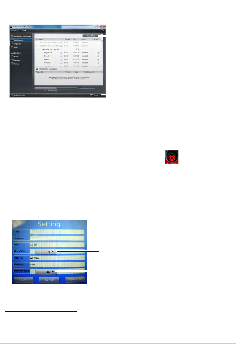 1 Locate the app in your BlackBerry and open Lorex Mobile ECO ( ).