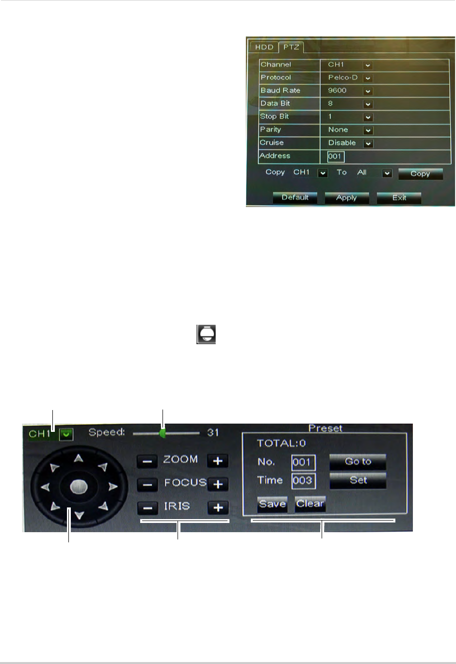 -click and press the PTZ button ( ). Enter the system password. The PTZ menu