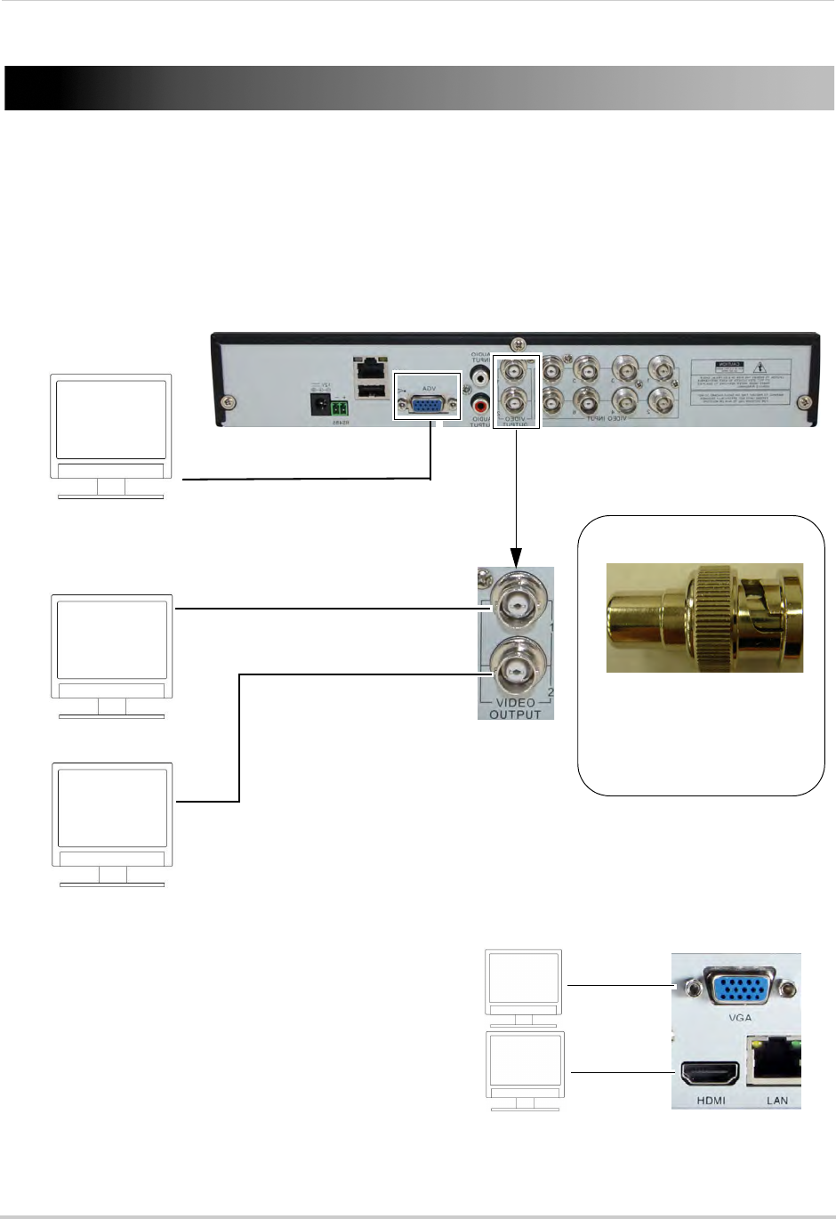 Use the Video Output ports (BNC) on the rear panel of the system to connect an external