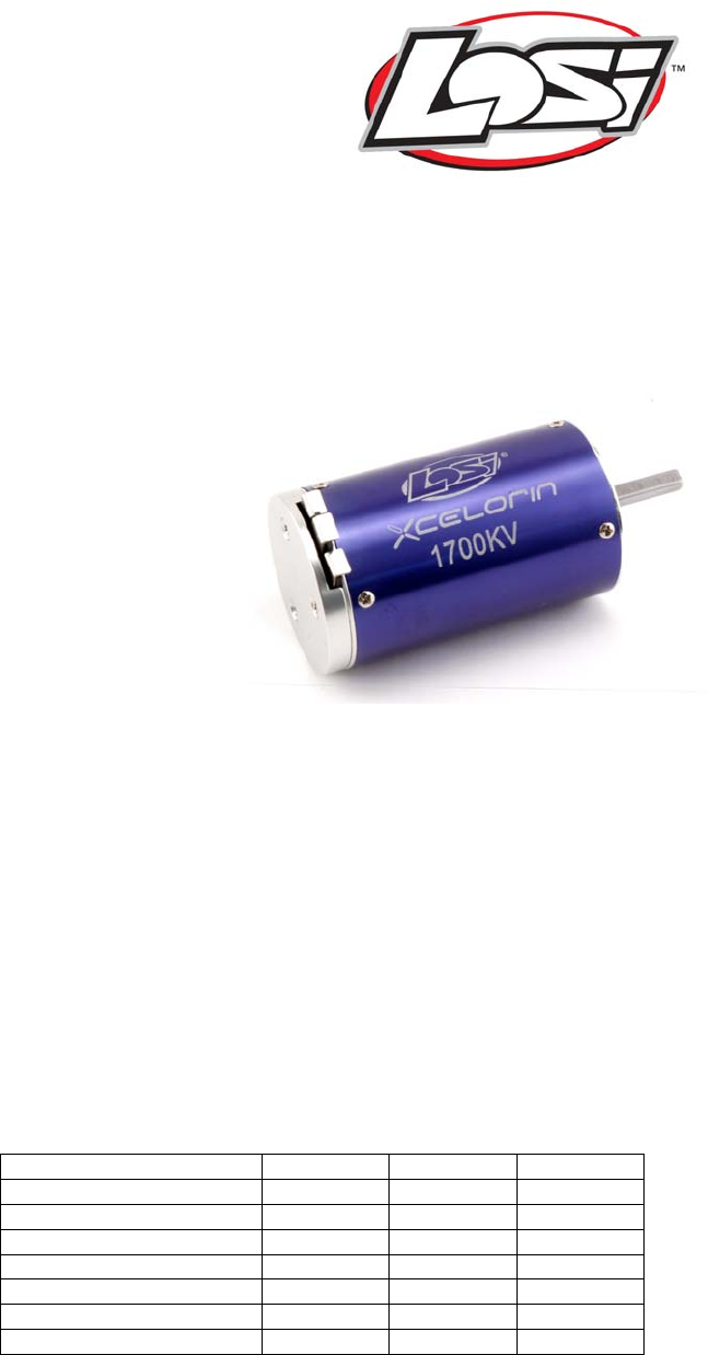 Thank you for purchasing the Losi™ Xcelorin™ sensorless motor. This motor will provide you the