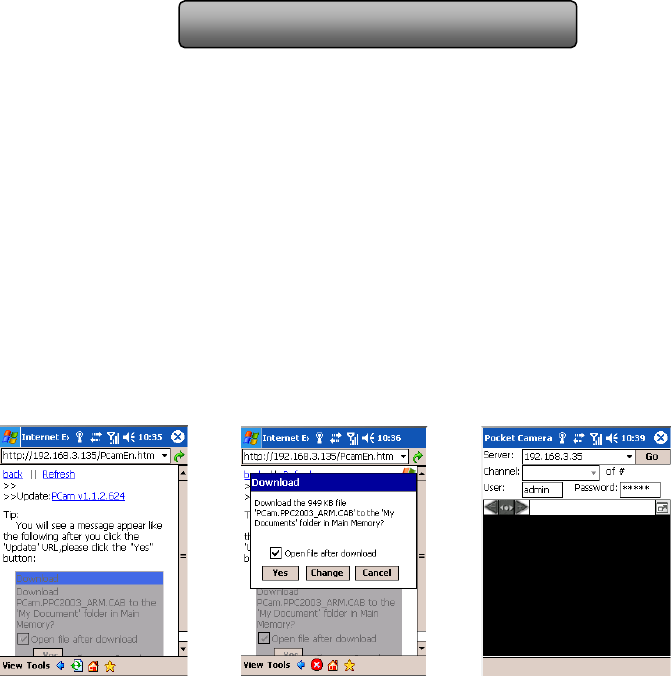 Step1: Firstly activate the network access on mobile phone and then run “Internet Explorer”. Input the server’s address and the