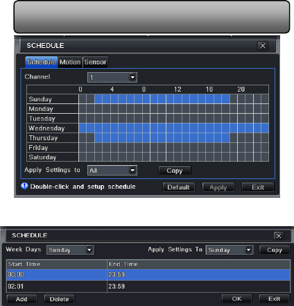 ② If the user wants to apply the schedule setting of certain channel to other or all channels, he needs to select channel and