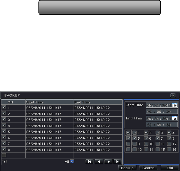 Step2: set the start & end time, select channels, click Search button, the searched data will be displayed in the data backup