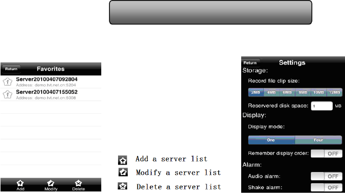 6. Server list Interface, refer to below picture in the left: