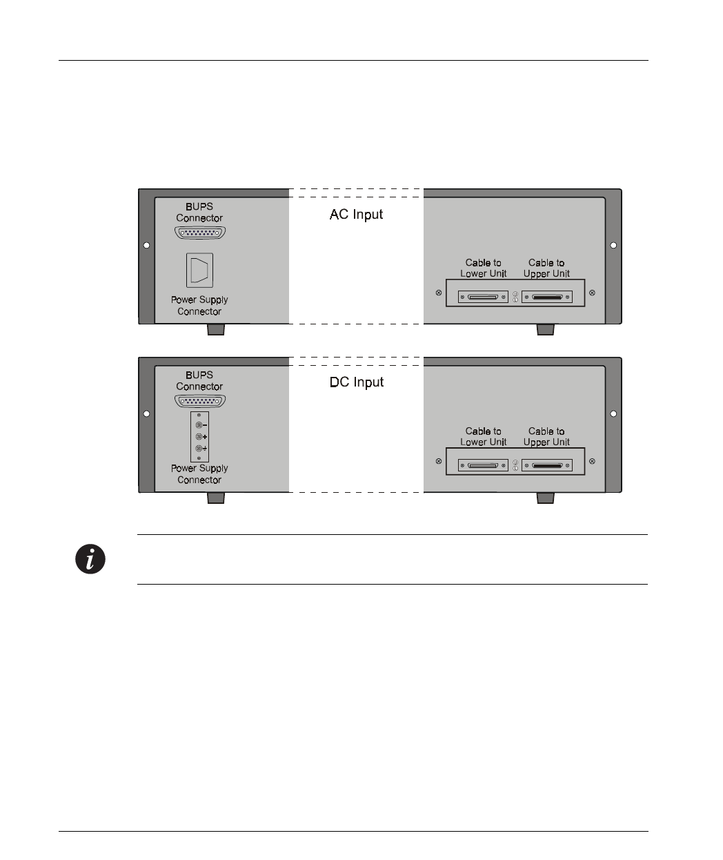 BUPS connector. Figure 2.3 shows the back panel of the AC switch (top) and the