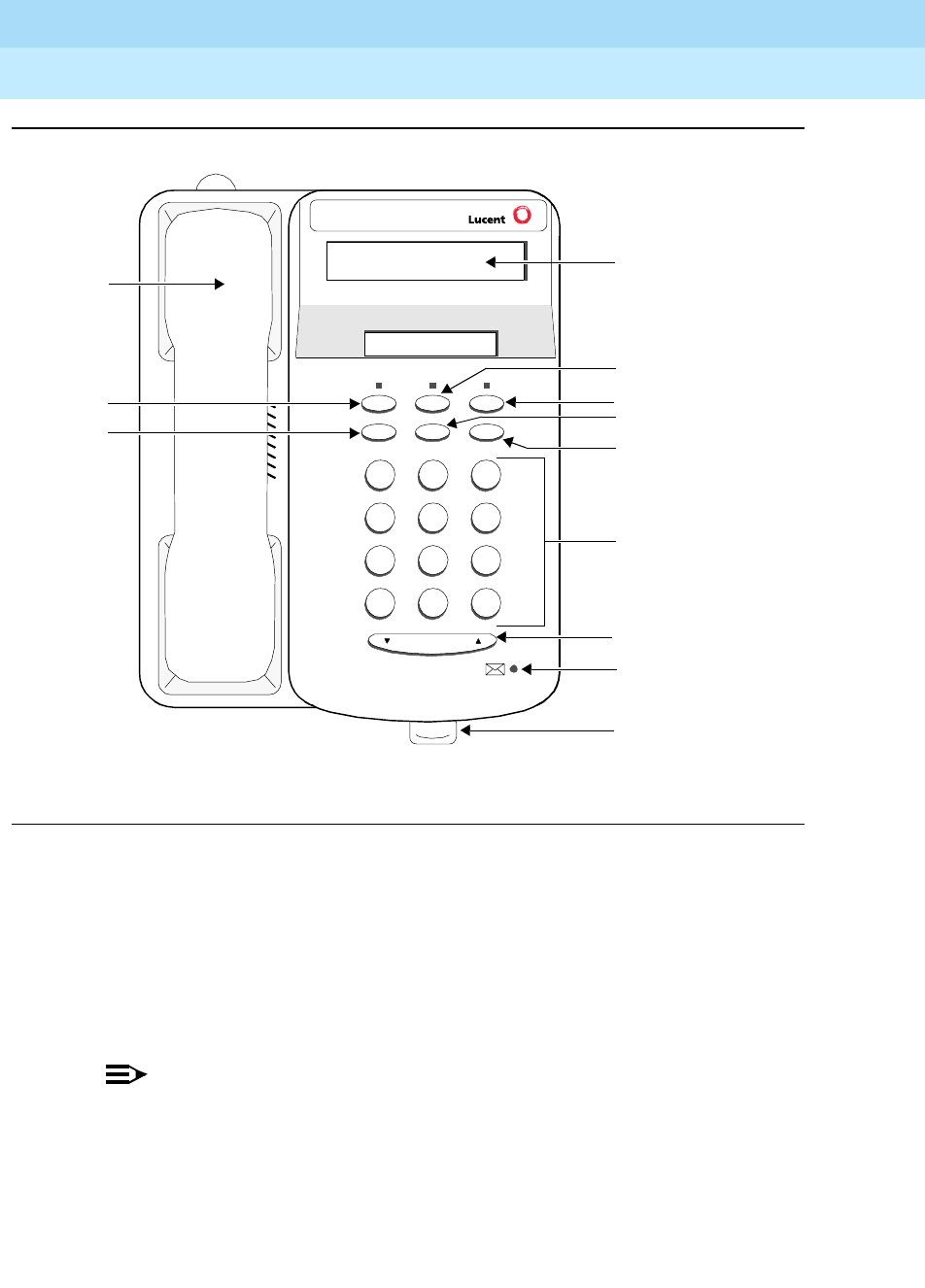 The 6402 and 6402D are single-line telephones with six fixed feature buttons: a