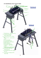 5.1 Folding out the support frame The support frame ensures secure mounting of the control unit and allows to operator to work standing upright. The control unit is delivered in the folded transport position. Proceed as follows to erect the system (two people required): 1. Lift the control table with the handles at the side. Place your hands in the handles on the left and right, that are located opposite the locking knob, in each case, in order first to fold out the lower support frame. 2.