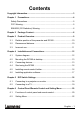 Contents Copyright Information ....................................................................................... 3 Chapter 1 Precautions .................................................................................... 4 Safety Precautions ....................................................................................... 5 FCC Warning................................................................................................ 5 EN55022 (CE Radiation) Warning ........................