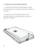 5. Laden des Akkus 1. Stecken Sie das originale USBKabel in den Micro-USB-Stecker. 2. Stecken Sie das andere Ende des USB-Kabels in den Stromadapter und stecken Sie diesen in eine Steckdose (Ladezeit 1,5 bis 2 Stunden) ODER stecken Sie das USB-Kabel in einen Computer (Ladezeit 2 bis 3 Stunden).