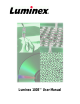 © LUMINEX® CORPORATION, 2004. All rights reserved. No part of this publication may be reproduced, transmitted, transcribed, or translated into any language or computer language, in any form or by any means without prior express, written consent of: LUMINEX CORPORATION 12212 Technology Boulevard Austin, Texas 78727-6115 U.S.A. Voice: (512) 219-8020 Fax: (512) 219-5195 Luminex 100ETM User Manual CN-M028-01 PN 89-00002-00-013 Rev.