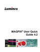 © Luminex Corporation, 2011. All rights reserved. No part of this publication may be reproduced, transmitted, transcribed, or translated into any language or computer language, in any form or by any means without prior express, written consent of Luminex Corporation. LUMINEX CORPORATION 12212 Technology Boulevard Austin, Texas 78727-6115 U.S.A. Voice: (512) 219-8020 Fax: (512) 219-5195 MAGPIX® User Quick Guide 4.
