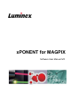 Chapter 1: Introduction Luminex® xPONENT® for MAGPIX® (xPONENT 4.1) IVD software was developed to improve workflow and efficiency in the laboratory. Designed for ease-of-use, xPONENT enables both new and advanced users to set up and run assays in a minimal amount of time. This manual describes the features and functions of xPONENT for MAGPIX. To ensure that you have the most up-to-date version of this manual, visit http://www.luminexcorp.com/ support/tech_manuals.html.
