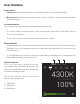 CCT Mode Correlated Color Temperature (CCT) mode allows you to accurately adjust the color temperature from 3000 to 10,000 K. Brightness is adjustable from 0% to 100% in 1% increments. 4300K Tint sets the green/magenta saturation level in 1% increments from 100% (full plus green) to -100% (full minus green). +/− Green 0% 100% Adjustment Dials • Top: Adjusts the color temperature in 50 K increments. • Bottom: Adjusts the brightness from 0% to 100% in 1% increments.