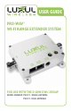 Pro-WAV Wi-Fi Range Extender System Model Number: PW-FC1 INSTALLATION GUIDE © 2009 by Luxul Wireless, Inc. All rights reserved. No part of this publication may be modified or adapted in any way, for any purposes without permission in writing from Luxul Wireless, Inc. (Luxul). The material in this manual is subject to change without notice. Luxul reserves the right to make changes to any product to improve reliability, function, or design.