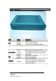 Back Panel View Port Description Power Switch Power Press to turn the router on and off. Connects to a 15 VAC AC power adapter. Restart—press the button for less than 4 seconds. Default settings—press the button for 4 seconds or longer. RJ-45 connects the unit to an Ethernet device such as a PC or a switch. Reset LAN1-LAN4 Line ADSL connection. 4-Port ADSL Router Lynx L-325 User Manual Version 1.