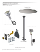 ASSEMBLY Mount pole base onto a concrete floor or cast concrete with minimum below grade depth of 12” and having a 12” diameter. If forming concrete, cast in place appropriate passage for gas and control wires. Use minimum 3/8” x 5” 90° lag bolts or equivalent to mount heater base to the concrete base. The pole base could also be mounted on wood decks with 3/8” bolts and lock washers on the underside of the deck. Periodically check for tightness when mounted to a wood deck.