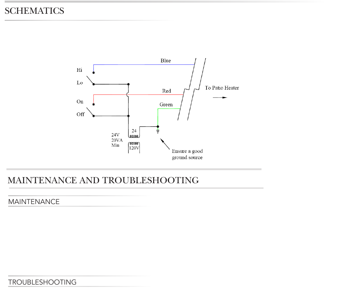 • Annually verify hose gas supply in heater post and all connections for gas leaks.
