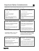 Important Safety Considerations WARNING! Read this manual carefully and completely before using your grill to reduce the risk of fire, burn hazard or other injury, and to ensure proper installation and servicing. FOR YOUR SAFE T Y AV E R T I S S E M E N T If you smell gas: S’il y a une odeur de gaz: 1. Shut off gas to the appliance. 2. Extinguish any open flames. 2. Open lid. 4. If odor continues, keep away from the appliance and immediately call your gas supplier or fire department. 1.
