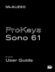 ProKeys Sono 61 User Guide | 3 Introduction Congratulations on your purchase of M-Audio ProKeys Sono 61. ProKeys Sono 61 is a semi-weighted, velocity sensitive 61-key digital piano, USB-compatible MIDI controller, and an audio interface in one convenient package. Play the on-board premium keyboard sounds as a standalone instrument or plug a microphone and guitar into ProKeys Sono and record, edit and produce your performance via your computer utilizing the included recording software.