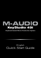 KeyStudio 49i Quick Start Guide | 1 Congratulations on your purchase of M-Audio KeyStudio 49i: a 49-key full-size, velocity sensitive USB keyboard, digital piano, audio interface, and software package, designed for easy integration with your computer. KeyStudio 49i is ideal for use with a multitude of music creation applications. We recommend you spend a few minutes reviewing this Quick Start Guide to ensure proper setup.