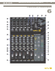 Manual de instrucciones de NRV10 17. | 9 Indicador de pico DFX: Este indicador se ilumina cuando el nivel de entrada del procesador de efectos digitales excede su headroom. Cuando esto ocurra, disminuya el nivel de entrada de cada fuente individual con el control de envío Aux 2 de ese canal (8). 18. Selección de programa DFX: Este conmutador rotatorio permite seleccionar uno de los 16 programas de efectos disponibles en el procesador de efectos digitales interno de NRV10.