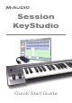 Session KeyStudio Quick Start Guide | 1 Introduction Congratulations on your purchase of M-Audio Session KeyStudio. Session KeyStudio is a complete music production kit containing a 49 full-size key USB keyboard, an audio interface, and music production software designed for easy integration with your Windows XP or Windows Vista computer. The hardware contained in this package is also ideal for use with a multitude of third-party music creation applications.