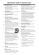 IMPORTANT SAFETY INSTRUCTION 1. READ INSTRUCTIONS All the safety and operating instructions should be read before the appliance is operated. 2. RETAIN INSTRUCTIONS The safety and operating instructions should be retained for future reference. 3. HEED WARNINGS All warning on the appliance and in the operating instructions should be adhered to. 4. FOLLOW INSTRUCTIONS All operating and use instructions should be followed. 5.