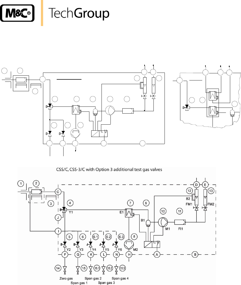 - sample gas flow (C, 4, 7, 9, 10, 12 and 13, D and E);