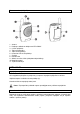 2) Težava: Na enoti za otroka ni sprejema. Možni vzroki: • Naprava ni vključena. • Napajalnik ni priključen. • Glasnost je nastavljena na najmanjšo stopnjo. 3) Težava: Nočna lučka ni vkljuečna. Možen vzrok: Stikalo za nočno lučko ni pravilno nastavljeno. Potisnite stikalo v položaj ON ali AUTO. TEHNIČNI PODATKI Frekvenca: ................................................................................................................... 2,4 GHz Domet: .......................................................