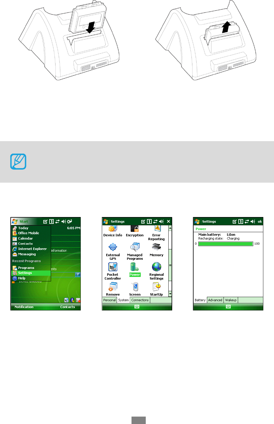 Battery attached to the PDA will be charged first than the spare battery on the cradle,