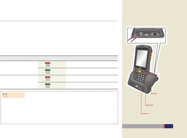 LED on the upper left part of the Main Unit. The charging status of the aux. battery can