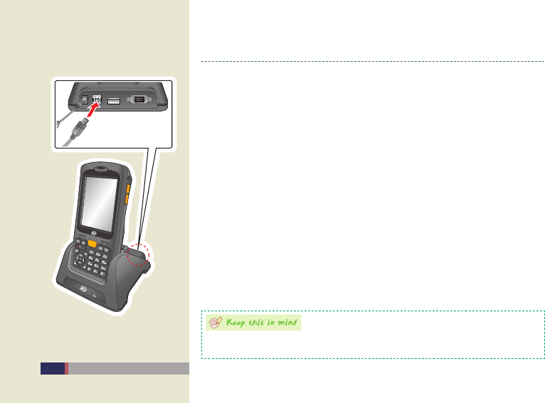 Connect the USB cable to the USB port of the cradle and connect the cable to the PC’s