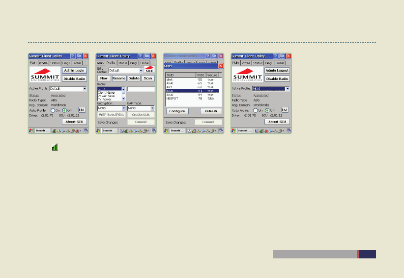 Select Scan from the Profile tab, select the AP to connect to, and select Configure to configure the proper settings for the selected