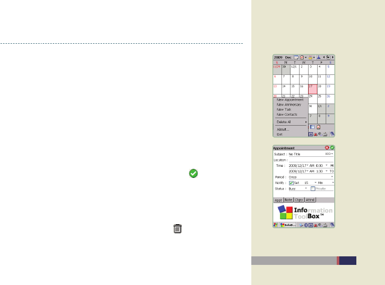 To delete the schedule or anniversary, long press on the saved schedule or anniversary, and
