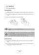 1.2 Battery 1.2.1 How to Uses Inserting battery Release hand strap, and position the battery to the bottom of battery pack. Push down the battery with one hand and lock battery lock with the other hand. Put the hand strap back in its original position. M 3 T uses Li-ion 3.7V, 2,700mAh battery. Using unauthorized battery may cause explosion or serious damage of the device. Risk of explosion if battery is replaced by an incorrect type. Dispose of used batteries according to the instructions.