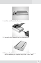 Hardware Installation Enclosure Sleeve Front Back Hi-Speed USB2.0/SATA II PHR-100SU for SATA Drive Front Panel Back Panel Note: The diagrams below are using the FireWire/USB2.0 Enclosure as an example, installation procedures for PHR-100SU are similar. 1. Do not connect AC Adapter to the enclosure. unscrew to loosen the Back Panel and remove the Back Panel from the Enclosure. 2. Use your thumb to push the Base Plate out.