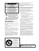 CAUTION AVIS RISK OF ELECTRIC SHOCK DO NOT OPEN RISQUE DE CHOC ELECTRIQUE NE PAS OUVRIR CAUTION: TO REDUCE THE RISK OF ELECTRIC SHOCK DO NOT REMOVE COVER (OR BACK) NO USER-SERVICEABLE PARTS INSIDE REFER SERVICING TO QUALIFIED PERSONNEL ATTENTION: POUR EVITER LES RISQUES DE CHOC ELECTRIQUE, NE PAS ENLEVER LE COUVERCLE. AUCUN ENTRETIEN DE PIECES INTERIEURES PAR L'USAGER. CONFIER L'ENTRETIEN AU PERSONNEL QUALIFIE.