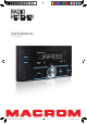 Declaration of Conformity There are no restrictions of use. The manufacturer Aldinet S.p.A declares that the type of radio equipment- AM/FM/DAB radio receiver and USB/SD card reader, model M-DL3200D, brand Macrom - complies with the 2014/53 / EU Directive. The full text of the EU Declaration of conformity is available at the following internet address: www.macrom.it, or at Aldinet S.p.A. Viale Colombo, 8 - 20090 Trezzano S/N (MI) Italy Made in China by Aldinet S.p.A.