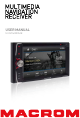 Declaration of Conformity There are no restrictions of use. The manufacturer Aldinet S.p.A declares that the type of radio equipment - Multimedia Navigation Receiver, model M-DVD6000DAB, brand Macrom - complies with the 2014/53 / EU Directive. The full text of the EU Declaration of conformity is available at the following internet address: www.macrom.it or at Aldinet S.p.A. Viale Colombo, 8 - 20090 Trezzano S/N (MI) Italy Made in China by Aldinet S.p.A.