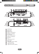Front/Rear view 1 2 12 1 2 3 4 5 6 7 8 9 10 11 12 13 14 15 16 17 18 19 3 4 13 5 6 14 7 15 Low Level Input High Level Input Gain Controll High pass switch High pass cutting adjustment Multiplayer x1/x10 switch Steroe Mono input selector Low pass switch Low pass cutting adjustment Multiplayer x1/x10 switch Led indicator Fuse 12V (DC) power terminal Remote terminal GND terminal + Left channel terminal (+ MONO) - Left channel terminal + Rigth channel terminal - Rigth channel terminal (- MO